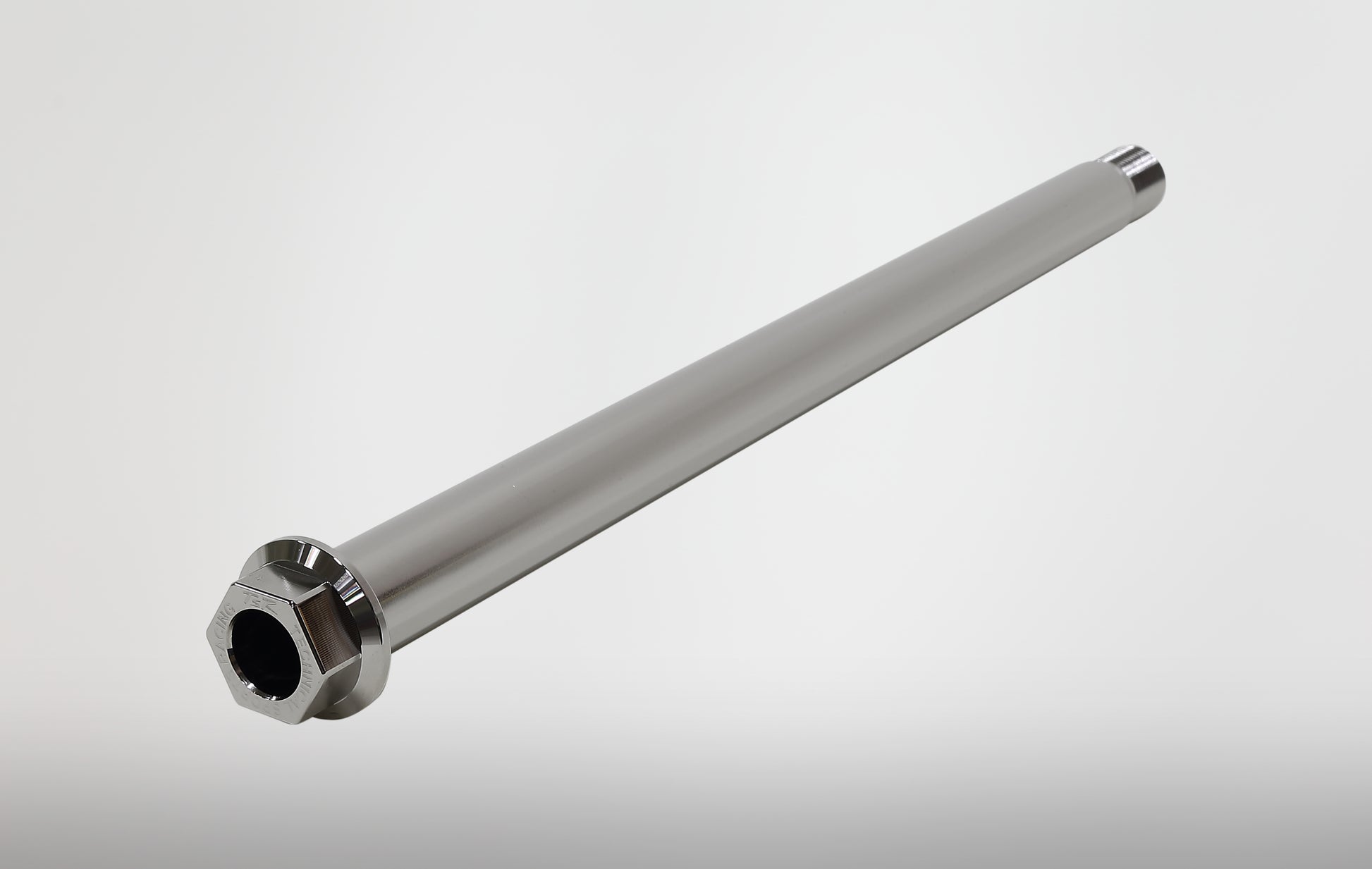 材質は日本製のクロームモリブデン鋼で、生材から熱処理を加え、ひずみをプレスで修正し、再度熱を加えた素材を使用。センターレス研磨と3層ものメッキ加工を行い、高い精度を実現。