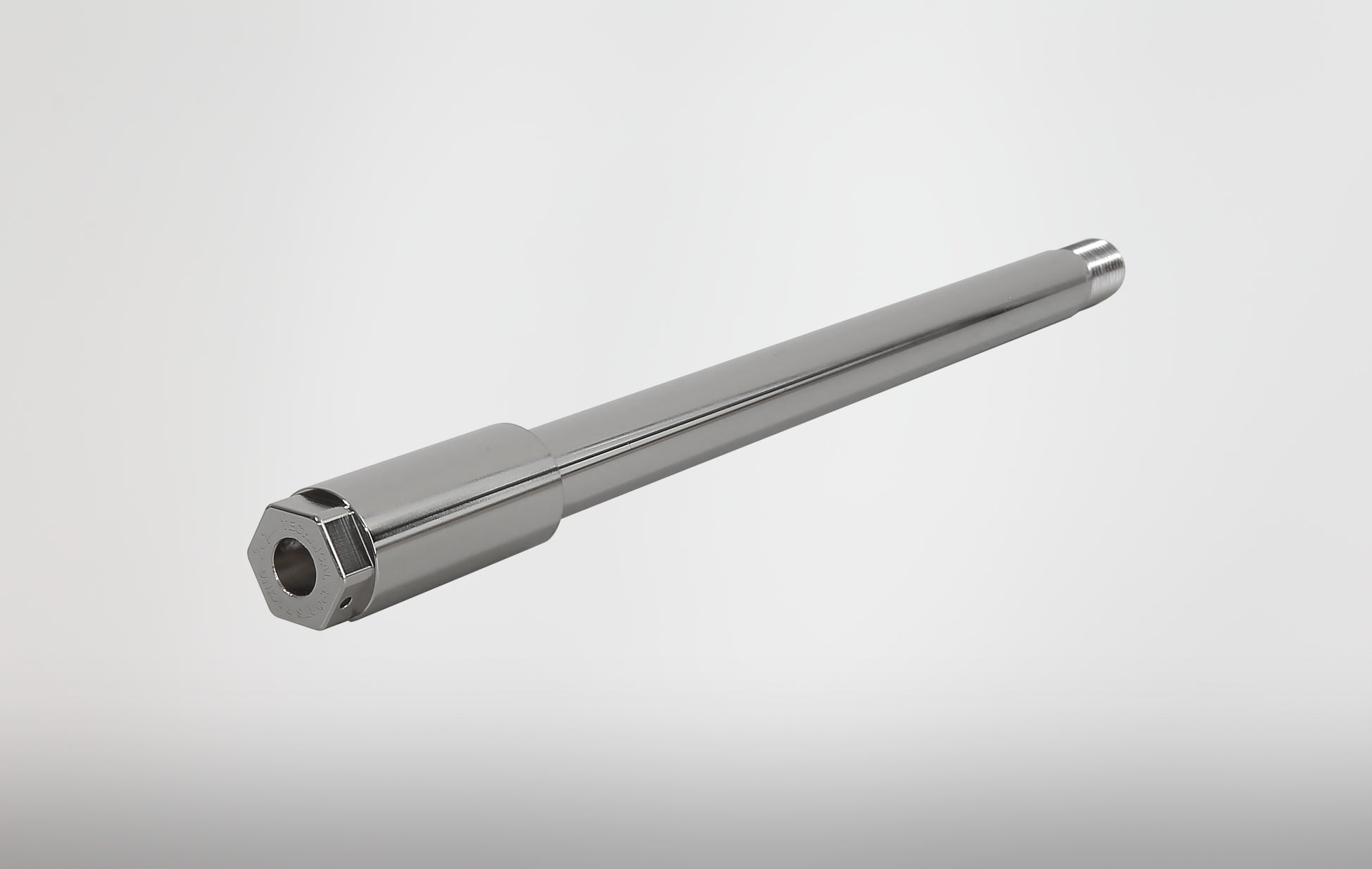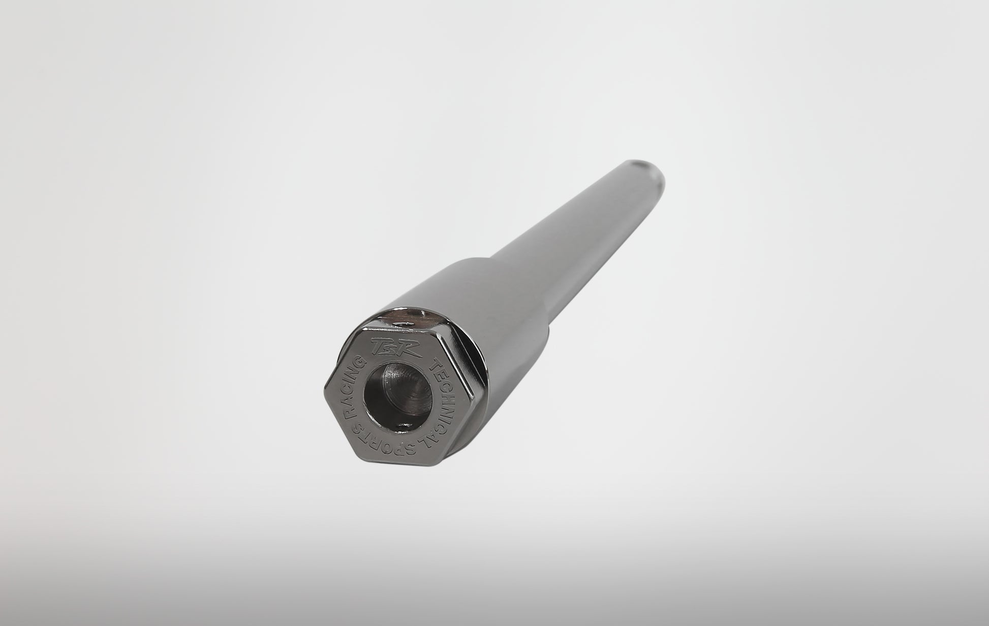 材質は日本製のクロームモリブデン鋼で、生材から熱処理を加え、ひずみをプレスで修正し、再度熱を加えた素材を使用。センターレス研磨と3層ものメッキ加工を行い、高い精度を実現。