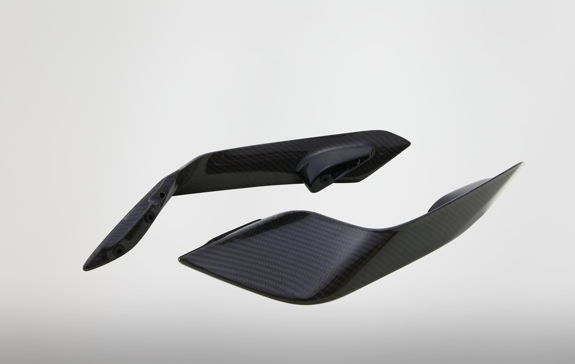軽量かつ高剛性に優れる綾織カーボンを採用したウイングレット。