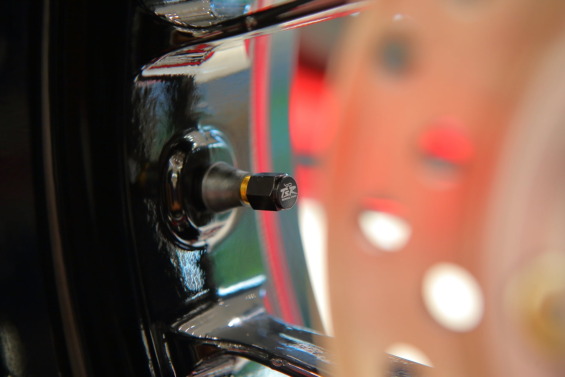 アルミ製・TSR刻印入りのタイヤエアバルブキャップ